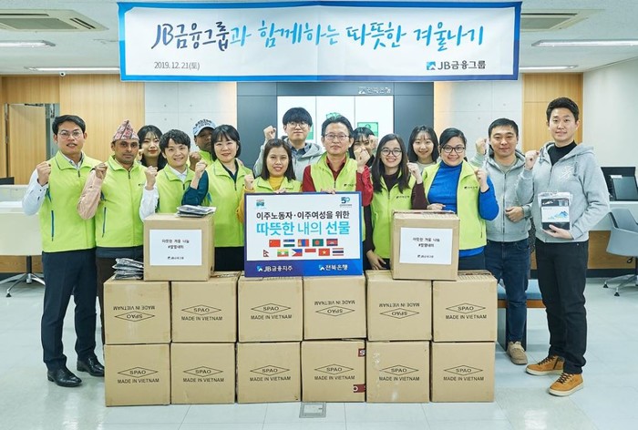 [시민일보 = 고수현 기자] JB금융그룹이 최근 전북은행 수원외국인금융센터에서 외국인 근로자 300여명에게 발열내의를 전달하는 행사를 가졌다.