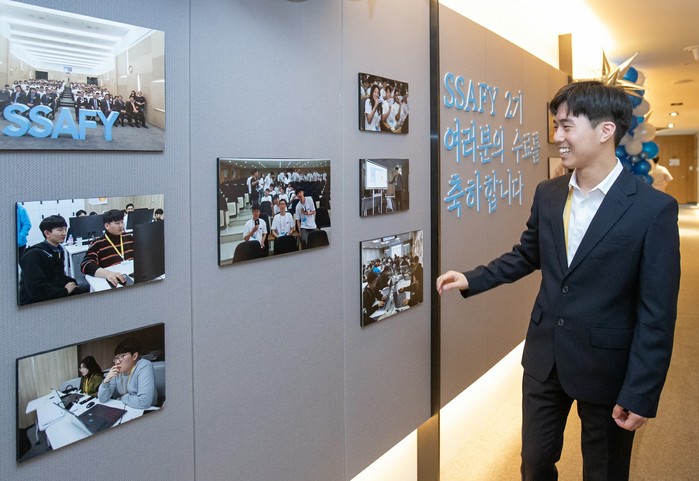 | ▲ 24일 서울 멀티캠퍼스 교육센터에서 열린 삼성 청년 소프트웨어 아카데미 2기 수료식에 참석한 교육생이 1년간의 활동을 되돌아 보고 있다.(사진제공=삼성전자) |