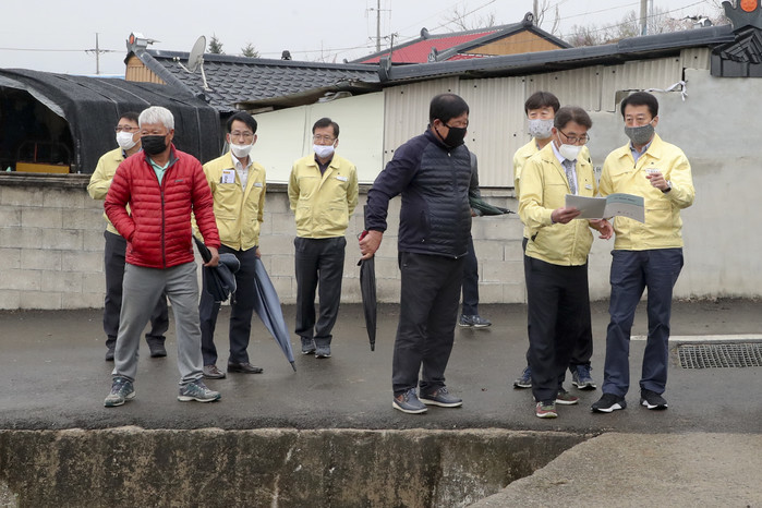 이날 문 군수는 올해 군에서 추진 중인 질매 풍수해 생활권 종합정비사업, 매호 급경사지 정비사업, 송정 재해위험저수지 정비사업장을 비롯한 사업장 5개소를 직접 방문하여 재해위험요인과 사업 추진 시 주민 불편사항 등을 함께 점검했다.