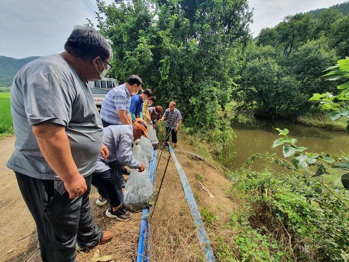 이날 행사에는 마을이장 및 지역주민이 참여한 가운데 참붕어 3만여 마리를 방류했다.