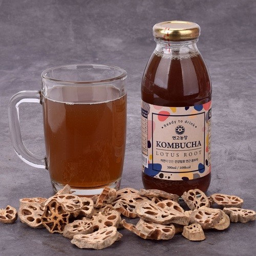 연근콤부차는 직접 경작한 품질 좋은 연근과 유기농 당을 첨가해 초산 발효한 제품으로 전통항아리 방식의 발효를 통해 만들어지는 제로카페인 제품이다.