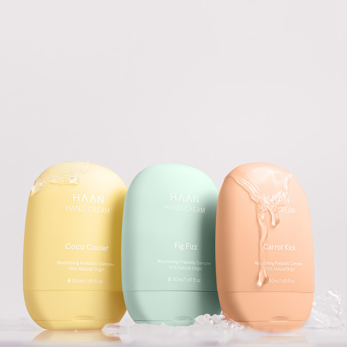한HAAN 핸드 크림은 핸드 크림 최초로 프리바이오틱스를 함유한 제품이다. 치커리와 돼지감자 등에서 추출한 이눌린과 과당 성분으로 이뤄진 프리바이오틱스 복합체는 피부 생태계를 균형 있게 만들어주는 미생물의 먹이가 되는 성분이다.
