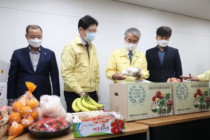 박종훈 교육감과 김경수 도지사는 “코로나19로 인한 학교급식 중단과 외식산업 위축으로 농산물 소비가 급감하여 농가 어려움이 가중되고 있는 가운데 농가의 실질적인 도움이 되고자 양 기관이 참여하게 되었다.”라고 밝히면서 “이번 농산물꾸러미 구입으로 시작된 농산물 소비촉진 운동에 전 도민이 함께 동참해 어려운 농업 현장에 힘을 보태 주시길 부탁드린다.”라고 말했다.