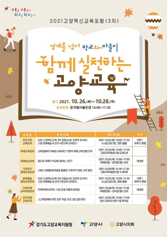 [고양=이기홍 기자] 경기도고양교육지원청은 10월 28일 ‘경계를 넘어 학교와 마을이 함께 실천하는 고양교육’이라는 주제로 2021고양혁신교육포럼을 개최하였다.