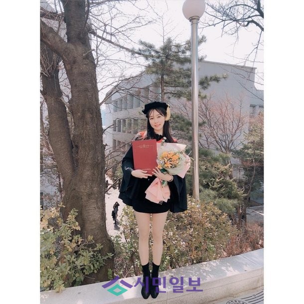 공개된 사진 속 김유지는 학사모를 쓰고 졸업장과 꽃다발을 품에 안고 미모를 과시해 이목을 사로잡았다.