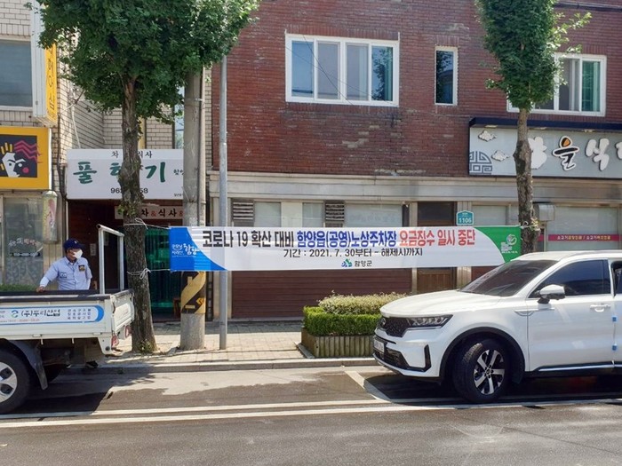 함양군이 코로나19 확산을 대비하기 위해 함양군 재향군인회와 협의하여, 함양읍 시가지 공영(유료)노상주차장의 요금징수를 일시 중단키로 결정했다.