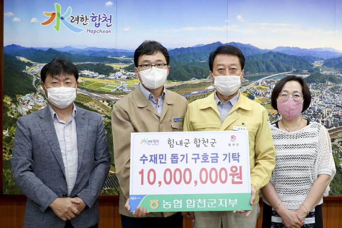 문준희 합천군수는 “더불어 사는 사회를 만드는데 앞장 서고 있는 NH농협 합천군지부에 감사드린다” 며, “수해 피해를 입은 군민들에게 잘 전달하겠다.”고 화답했다.