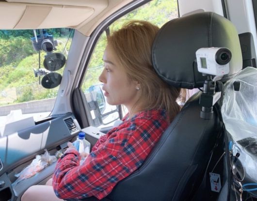 핑클의 막내 성유리가 바라본 옥주현의 시선이 따뜻하다. 옥주현은 차 조수석에 앉아 어딘가를 바라보고 있고, 창문을 통해 들어오는 햇살이 따뜻하게 빛나고 있다.