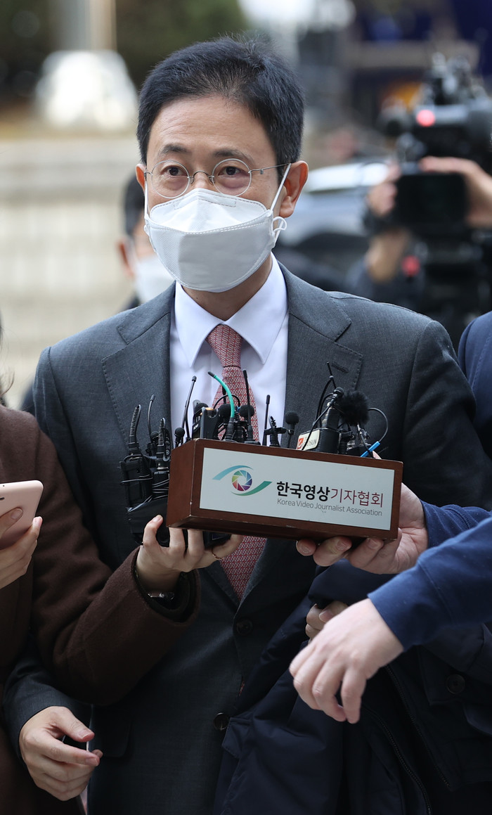 '고발 사주' 의혹의 핵심 인물인 손준성 대구고검 인권보호관이 26일 오전 서울 서초구 서울중앙지법에서 열린 영장실질심사에 출석하기 위해 법정으로 향하고 있다.