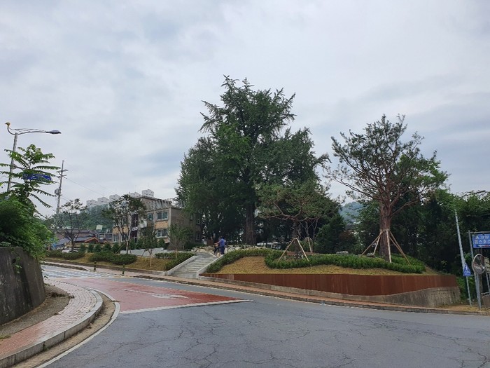 옹벽을 허물고 진입로를 추가했으며 보호수 주변으로는 왕벚나무, 소나무, 철쭉 등을 심어 녹지 공간을 마련했다.