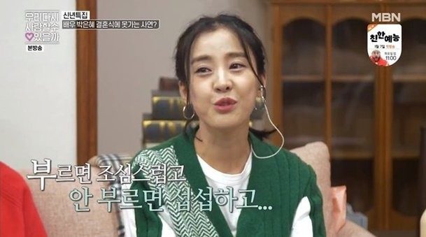 박은혜는 “사실 이혼 후 결혼식 가기 망설여진다. 옛말에 ‘이혼한 사람이 결혼식 가면 결혼한 사람에게 불이익이 갈 수 있다’는 말이 있지 않냐. 그분들에게 미안해서 결혼식 못 가겠더라”라고 털어놨다. 박영선, 김경란, 호란은 박은혜의 고민에 공감을 표했다.