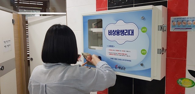 | ▲ 해남군, 공공시설 비상용 생리대 무료 자판기 설치 / 해남군 제공 |