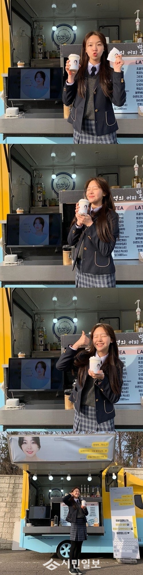 공개된 사진에는 소속사가 영화 '오랜만이다' 촬영장에 응원차 보내준 커피차 앞에서 인증샷을 남기고 있는 방민아의 모습이 담겨 훈훈함을 자아냈다.