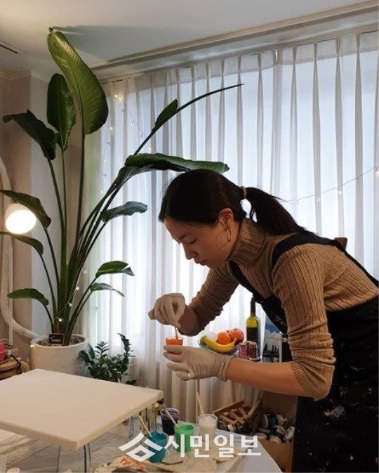 공개된 사진 속 류화영은 머리를 질끈 묶고 미술 작업에 한창인 모습으로 감탄을 자아냈다.