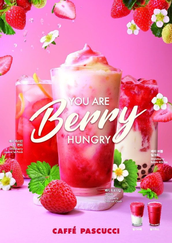 ‘You are BERRY hungry(당신은 지금 딸기가 먹고 싶다)’ 콘셉트로 선보이는 이번 신제품은 딸기, 파인애플, 복숭아, 코코넛이 어우러져 새콤달콤하면서도 청량감 가득한 슬러시 타입의 음료 ‘베리 트로피칼 크러쉬(R6,900원)’, 새콤달콤한 딸기와 은은한 자스민 향이 만나 깔끔한 맛을 이룬 ‘베리 자스민 티 펀치(R6,900)’, 딸기와 밀크티, 펄이 환상의 조화를 이룬 ‘베리 버블 밀크티(R6,900)’, 신선한 우유와 딸기의 달콤함을 동시에 맛볼 수 있는 ‘딸기 라떼(R6,500원/L7,000원)’, 제철 딸기의 진한 맛을 느낄 수 있는 ‘딸기 주스(R6,500원/L7,000원)’ 등이다.