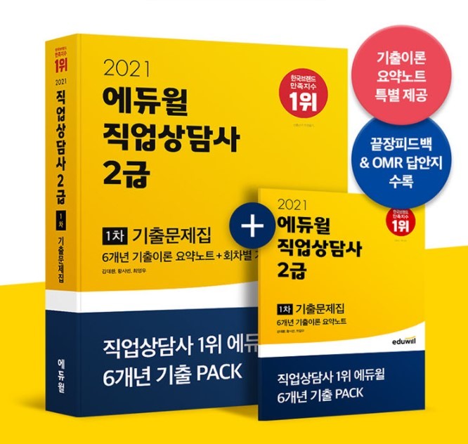 ‘2021 에듀윌 직업상담사 2급 1차 기출문제집’은 2020년 직업상담사 최신 기출문제를 포함해 2015년까지 6개년 기출문제와 해설, 그리고 총 1800문제에 대한 이론까지 모두 수록한 교재다.