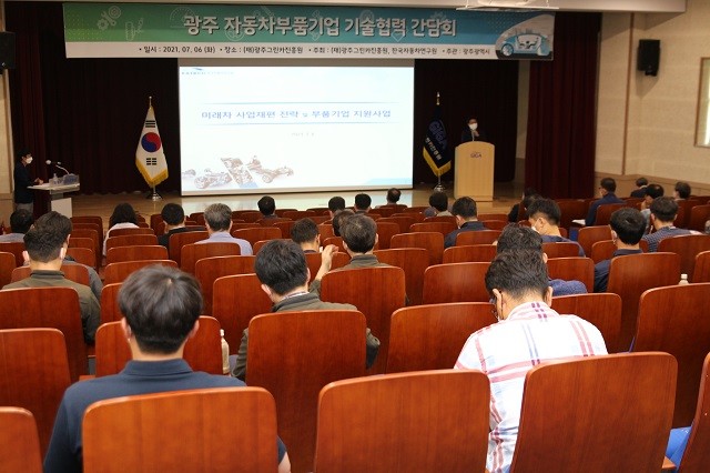 [광주=정찬남 기자] 광주그린카진흥원은 광주지역 자동차부품기업의 R&D 활성화와 미래차 전환에 선제적 대응을 위한 기술협력 간담회를 6일 광주그린카진흥원 1층 대강당에서 개최했다.