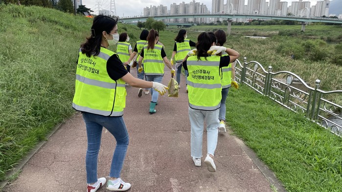 양산경찰서(총경 정성학)에서는‘21. 9. 7.(화) 양산경찰서 외국인명예경찰대 결혼이주 여성순찰팀과 함께 양산천 주변을 따라‘건강도 지키고, 하천도 지키고! 플로깅’캠페인을 진행하였다.