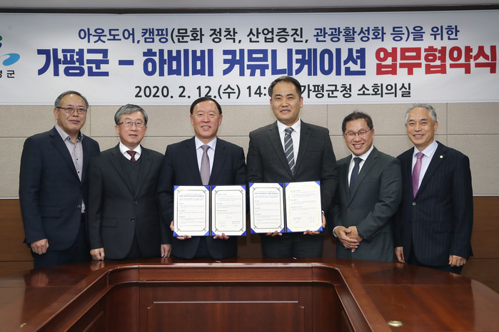 양 기관은 12일 가평군청에서 김성기 가평군수와 강동구 하비비커뮤니케이션 대표가 참석한 가운데 ‘캠핑문화 정착 및 캠핑산업 증진’을 위한 업무협약(MOU)을 체결했다.
