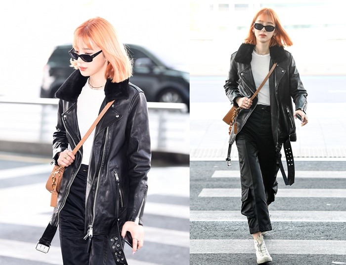 아이린은 24일 오전 인천공항을 통해 프랑스 파리로 출국했다. 그는 이날 블랙 앤 화이트 룩에 오버사이즈 바이커 재킷을 매치하며 패션 센스를 과시했다.