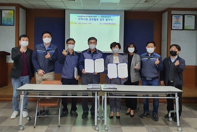 [광주=정찬남 기자] 광주환경공단(이사장 김강열)과 광주남구자원봉사센터(소장 김정희)가 24일 사회공헌 업무협약을 체결하고, 코로나19 위기 극복을 위해 다양한 지역사회 공헌활동을 공동으로 추진한다고 밝혔다.