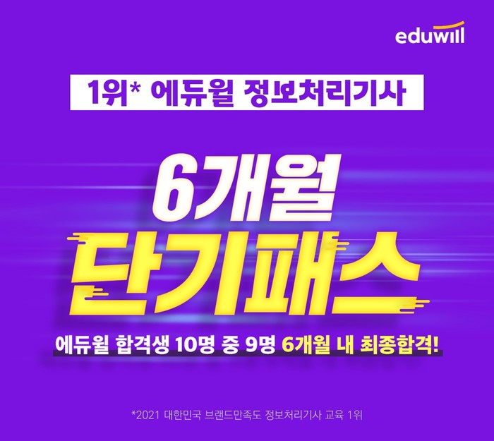 [시민일보 = 여영준 기자] 종합교육기업 에듀윌(대표 박명규)이 단기간에 정보처리기사 자격증을 취득할 수 있는 전용 과정인 ‘단기패스’를 운영하고, 수강생을 모집한다.