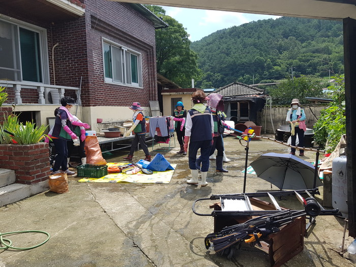 주부민방위기동대 합천군연합회(회장 장외자)는 8월 11일 10시부터 합천군 쌍책면 건태마을에서 120여 대원이 참여한 가운데 수해복구 봉사활동을 실시하였다.
