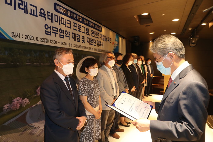 경상남도교육청(교육감 박종훈)은 22일 그랜드 머큐어 앰배서더(창원) 호텔에서 ‘미래교육테마파크 설립 자문단 위촉식 및 콘텐츠 개발 업무 협약식’을 개최했다.