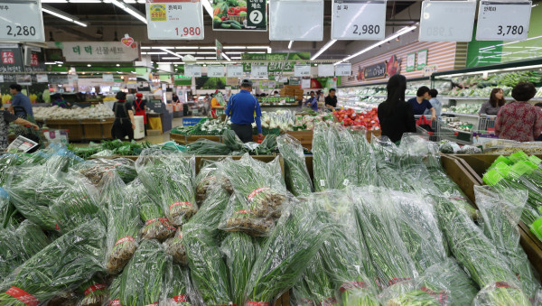 소비자물가 상승률이 전년 동기 대비로 지금껏 가장 낮은 0.0%를 기록했다. 소수점 자릿수를 늘려보면 -0.038%로 첫 마이너스를 찍었다. 2018년과 달리 양호한 기상여건 덕에 농·축·수산물 가격은 하락하고 국제유가도 내린 영향으로 풀이된다. 사진은 3일 오후 서울 시내의 한 마트에서 시민들이 채소를 고르는 모습.