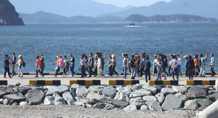 대통령 휴양지인 경남 거제시의 섬 저도가 47년 만에 시범 개방된 17일 오후 시민들이 저도를 방문하고 있다.