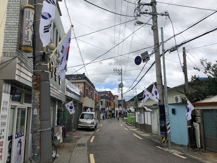 또, 길에 늘어선 전신주에도 태극기 꽂이를 설치해 게양하였고, 화단에는 바람개비 태극기 300여 개로 꾸며 주민들과 방문객들의 시선을 집중시키고 있다.
