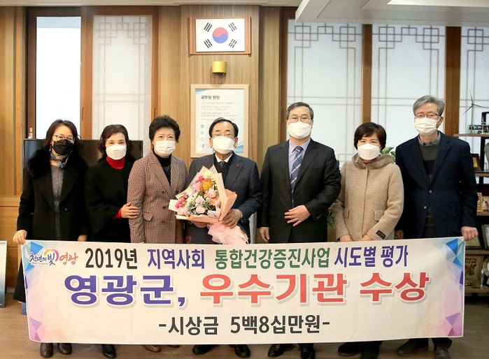 특히 영광군 지역사회 건강현황과 건강수준을 조사하여 지역사회 보건문제를 종합 분석한 결과 사업 전체의 목표 개수는 24개, 중점적으로 개선해야 할 핵심성과지표를 3개 부분(혈당 인지율, 혈압 인지율, 걷기실천율 향상)을 설정하여 혈당, 혈압 인지율이 전년 대비 각 4%, 걷기실천율은 전년 대비 13.4% 향상시켰고 8개 영역 또한 유기적 통합 프로그램을 적극 추진하여 높은 점수를 받았다.