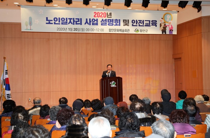 이번 교육에서 조근제 함안군수는 인사말을 통해 “앞으로도 어르신들의 건강하고 안전한 노후를 지원하기 위해 다양한 노인복지 사업을 펼쳐 나갈 것이며, 노인일자리 사업 참여로 건강도 챙기고 사회활동도 참여하는 등 1석2조의 도움이 되길 바란다”고 말했다.