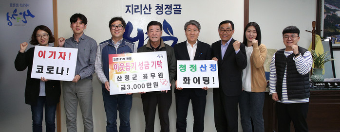 이재근 산청군수는 “지역경제를 살리기 위한 소중한 성금을 마련해 주신 모든 공무원분들이 자랑스럽고 감사하다”며 “본연의 업무에 더해 매일 비상근무와 방역활동에 나서고 있는 공무원 여러분과 이에 적극적으로 협조·동참해 주시는 주민 여러분께도 마음 깊이 감사드린다”고 말했다.