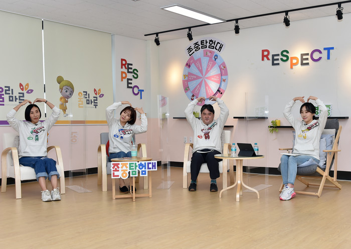 이어 패널들도 존중 문화를 확산하기 위해 부산시교육청 존중 캐릭터가 새겨진 후드티를 입은채 존중 댄스를 선보였다.