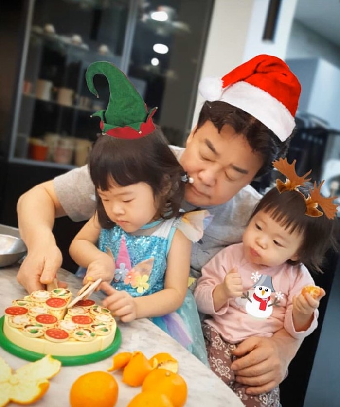 공개된 사진 속 백종원은 두 아이와 함께 카메라에 포착되었다.