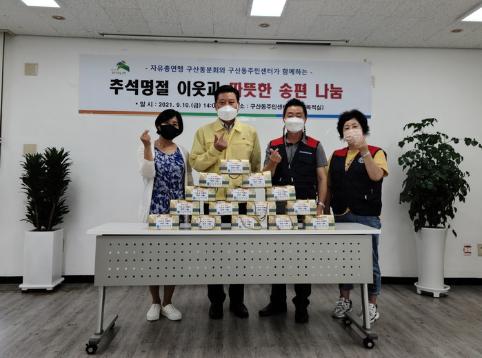 박창규 자유총연맹 구산동분회 회장은 “추석에는 온 가족이 한 밥상에 둘러앉아 음식을 나누어 먹고 가족의 정을 나누던 시절이 있었다. 작은 정성이지만 명절을 외롭게 보내는 이웃에게 조금이나마 위로가 되고 따뜻한 온정이 전해지길 바란다”고 전했다.