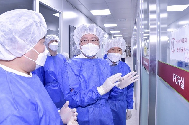 [광주=정찬남 기자] 이용섭 광주광역시장은 21일 남구 (재)씨젠의료재단 광주호남검사센터를 방문해 시설을 둘러보고 박창수 대표원장 등 관계자를 격려했다.