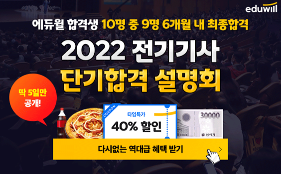[시민일보 = 여영준 기자] 에듀윌은 전기기사 시험 단기합격 노하우를 공개하는 ‘2022 전기기사 단기합격 설명회’를 오는 16일까지 공개한다고 밝혔다.