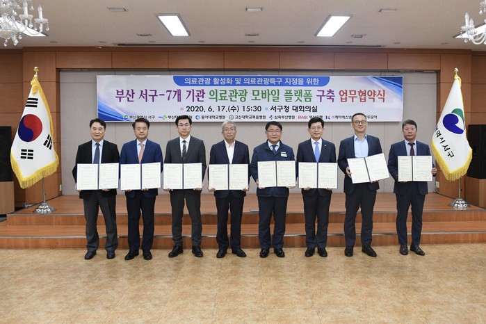 [시민일보 = 여영준 기자] BNK부산은행은 17일 오후 부산시 서구청 대회의실에서 부산 서구청, 부산대학교병원, 동아대학교병원, 고신대학교복음병원, 삼육부산병원, 결제중개업체 ㈜케이에스넷, ㈜모두모아 등 7개 기관과 ‘지역상생형 모바일 의료관광 플랫폼’ 구축을 위한 업무협약을 체결했다고 밝혔다.