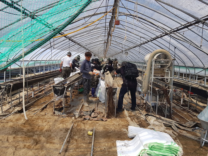 파손된 비닐하우스에는 39사단 합천대대 등 4개 대대가 5일간 매일 200명씩 비닐하우스 철재구조물 철거, 내부 폐자재 정리, 토사제거 작업을 진행한다.