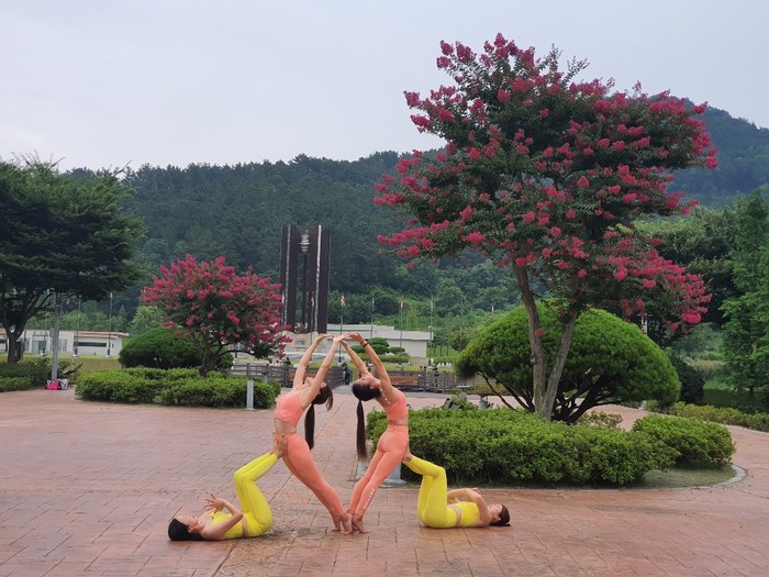 | 요가시연을 하고 있다.(사진제공=밀양시청) |