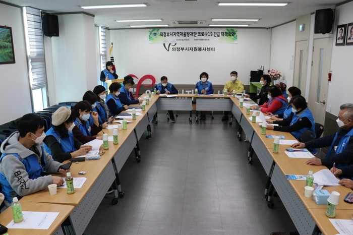 경기 의정부시 지역자율방재단은 최근 코로나19(우한폐렴) 확산 예방을 위해 긴급 대책회의를 했다. 이날 회의에는 지역내 자율방재단 각 대표 등 30여명이 참석해 방역활동 현황을 보고하고 애로사항에 대해 건의했다. 사진은 회의 진행 모습.(사진제공=의정부시청)