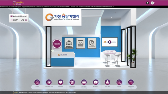 이번 말레이시아 온라인 박람회는 거창군과 한국승강기안전공단이 공동으로 참가했으며, 거창승강기밸리관과 한국관 2개의 온라인 부스에 11개 승강기 기업체가 참가해 코로나19로 수출에 어려움을 겪고 있는 중소기업의 시장개척을 지원했다.