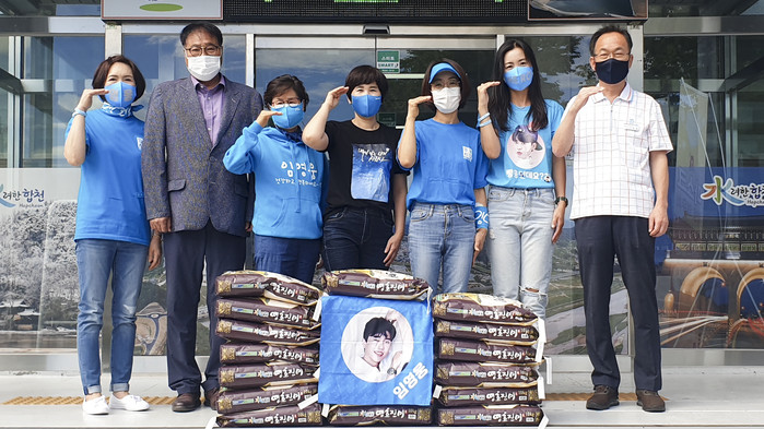 가수 임영웅의 팬클럽 “합천 영웅시대(회장 이상남)”에서 읍내 조손가정에게 전해 달라며 백미(영호진미 10kg) 20포(70만원 상당)를 합천읍에 기탁했다. 이는 올해로 데뷔 5주년을 맞이하는 임영웅씨를 축하하기 위한 팬들의 작은 선행으로 보인다.
