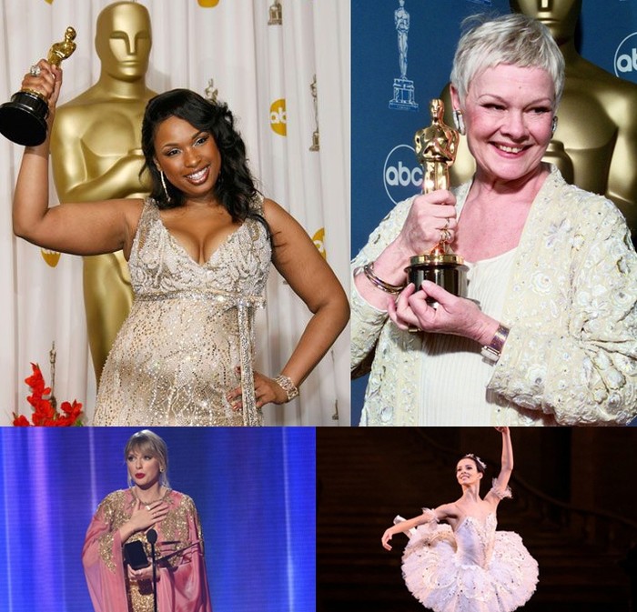 | (출처: 제니퍼 허드슨 – Posh24 / 주디 덴치 – Hollywood Reporter, 테일러 스위프트 – AP / 프란체스카 헤이워드 - WhatsOnStage) |