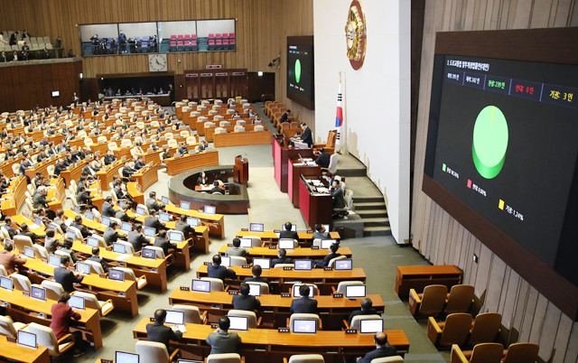 10일 오전 서울 여의도 국회본회의에서 민식이법으로 불리우는 도로교통법일부개정법률안이 통과되고 있다. /연합뉴스