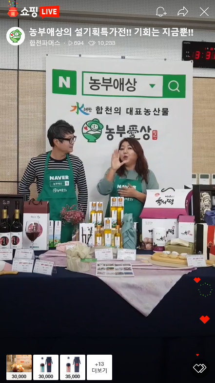합천군(군수 문준희)은 1일부터 ‘네이버 쇼핑 라이브’ 채널에서 합천군의 우수 농산물로 설 명전 기획전을 열어 본격적인 라이브커머스를 시작하고 있다.