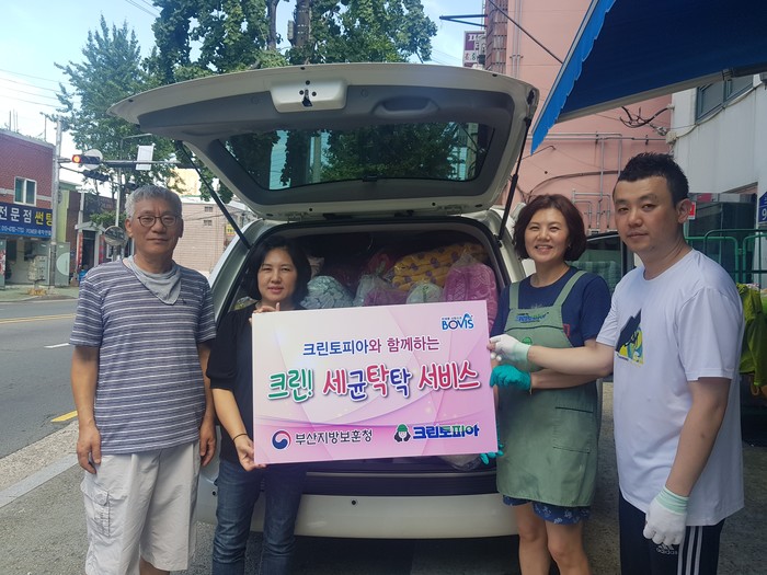 크린토피아의 무료세탁지원 사업인 ‘크린토피아 러브크리닝’은 도움이 필요한 이웃이나 단체에 세탁 서비스를 무료로 제공하는 사회 공헌 활동으로, 크린토피아 부산지역 지사에서는 2018년부터 올해까지 총 4회에 걸쳐 부산지역 보훈가족 320세대에 770여 점의 침구류 무료세탁 서비스를 지원했다.