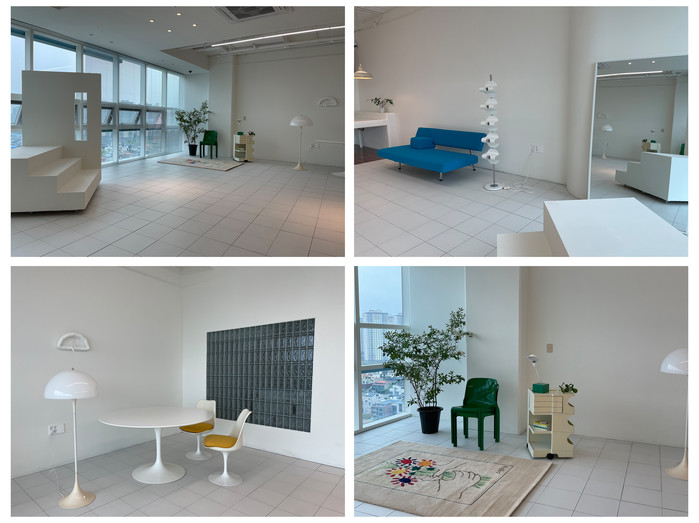 코로나 시대에 맞추어 변화하는 마케팅 및 촬영 문화는 실외보다는 실내로 집중되면서 보다 빠르게 트랜드를 반영한 결과라 볼 수 있다. 기존 스튜디오와 다르게 실내에는 20세기 MID CENTURY 인테리어 및 가구가 배치되어 있으며 네덜란드 디타일(DTILE)로 제작한 인테리어 파트가 돋보인다.